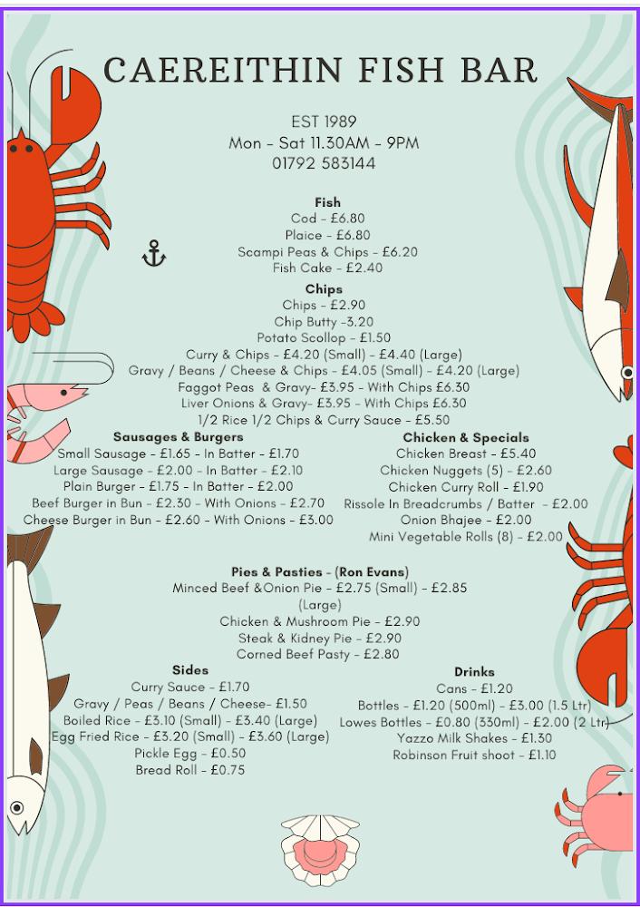 Located at 565 Pentregethin Rd, Ravenhill, Swansea, Caereithin Fish Bar is a beloved institution in the area. The long-standing history of this fish and chips shop speaks volumes about its commitment to quality and community. For over three decades, it has catered to both locals and visitors looking for a quick, delicious meal without breaking the bank. The restaurant is easily accessible, with a wheelchair-accessible car park and seating, ensuring that everyone can enjoy their meal here. Free street parking and a dedicated parking lot make it convenient for quick takeaway pickups.